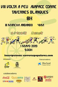 La octava edición de la Volta a Peu Avapace Corre se celebrará el miércoles 1 de mayo a partir de las nueve de la mañana en Tavernes Blanques.